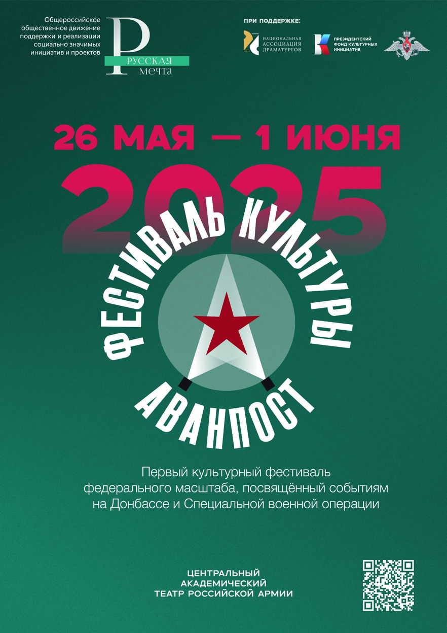 Фестиваль культуры "Аванпост" реализуется Национальной Ассоциацией Драматургов совместно с Общественным движением "Русская Мечта" при поддержке Министерства обороны Российской Федерации и Президентского фонда культурных инициатив.